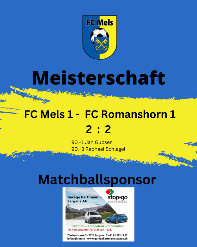 Auch die 1. Mannschaft holte sich einen Punkt. In einem verrückten Spiel gibt es ein 2:2 Unentschieden. Nach einem Rückstand ab der 15. Minute überschlugen sich die Ereignisse am Schluss. Jan Gubser glich in der Nachspielzeit der 2. Hälfte aus. Nur zwei Minuten später (90.+3) erzielte Raphael Schlegel den vermeintlichen Siegtreffer - doch weitere zwei Minuten später glich Romanshorn aus und so kommt es zur Punkteteilung.